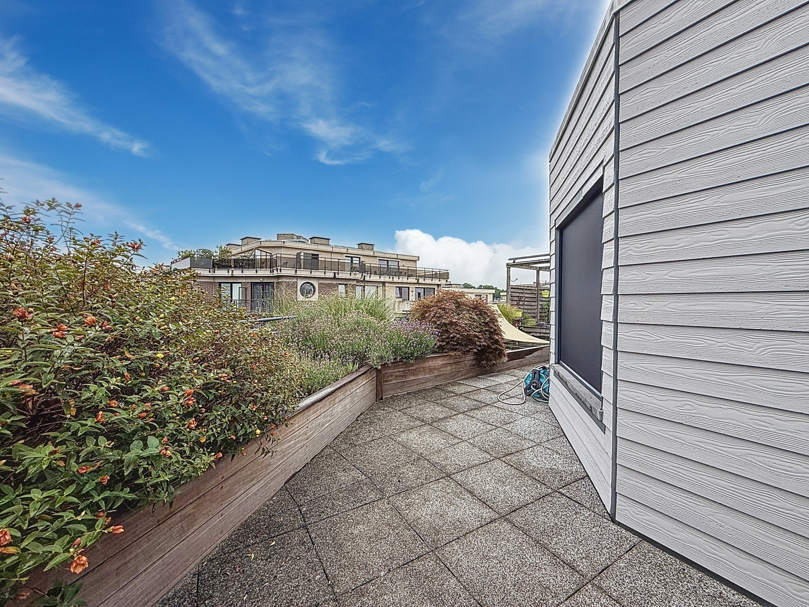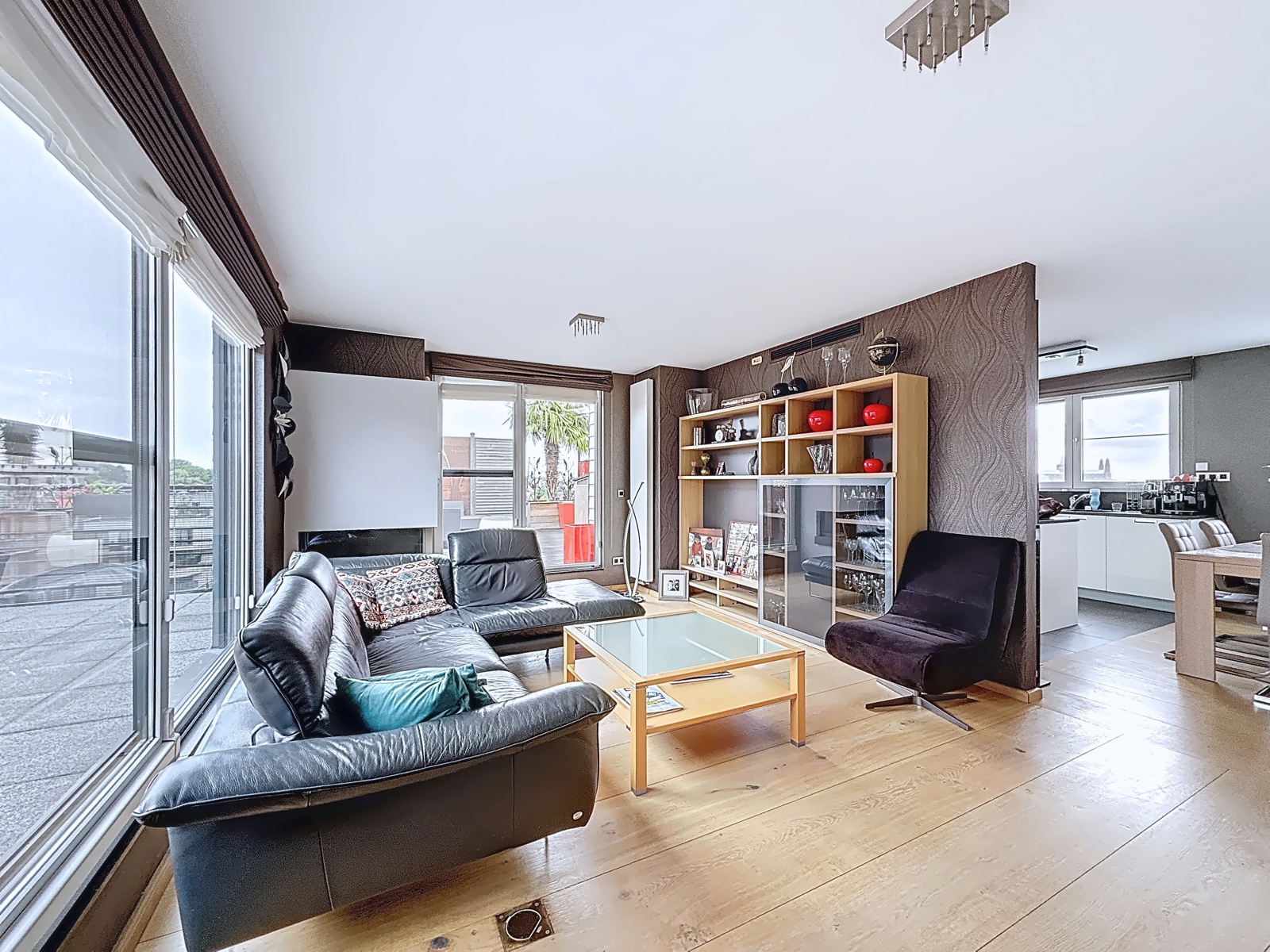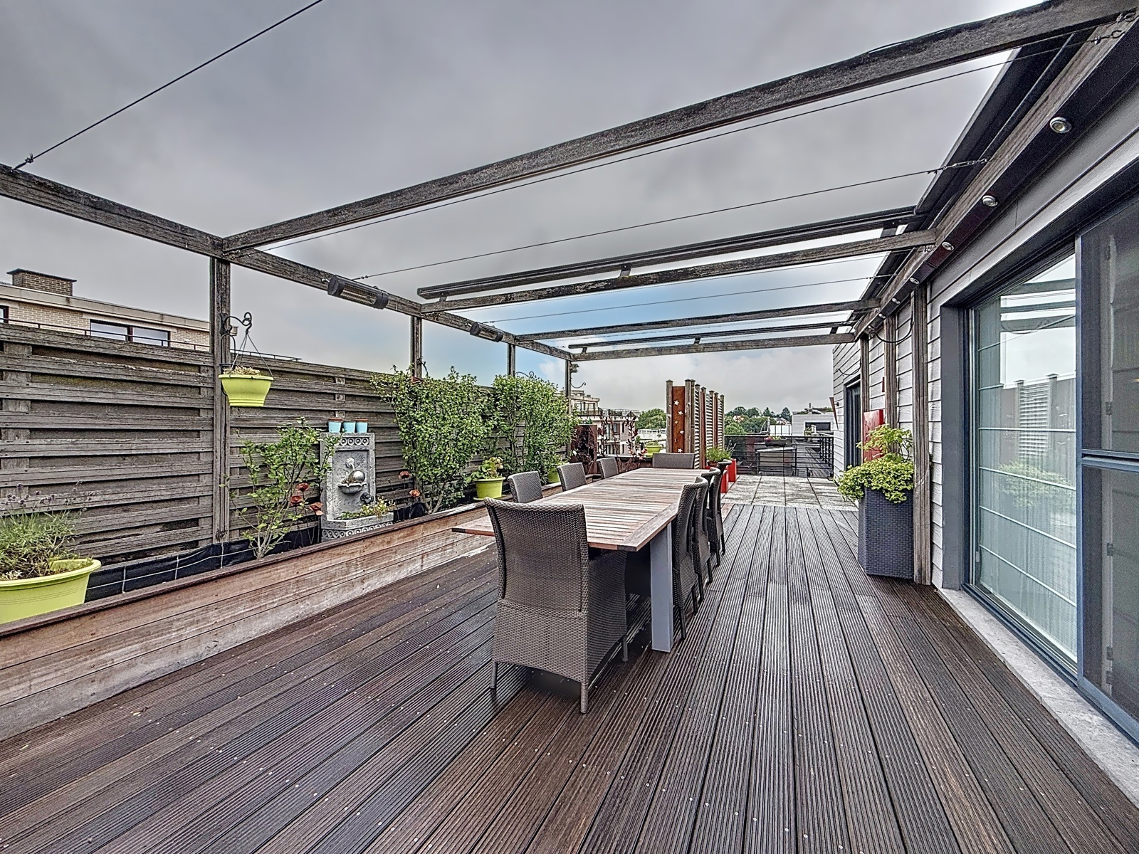 Located in a luxury building constructed in 2007, this magnificent penthouse captivates with its spaciousness, brightness, and high-end finishes. All living areas open onto a huge 175 m² terrace, a real highlight of this rare property, ideal for relaxing and enjoying convivial moments outdoors. The apartment features a spacious, light-filled living room with a gas fireplace and air conditioning, providing a warm and comfortable living environment. The fully equipped ATAG kitchen blends perfectly into the living space, combining aesthetics and functionality. The sleeping area features four bedrooms, including an elegant master suite with a private bathroom and a large 9 m² dressing room. An additional shower room and a separate toilet complete the space. A large laundry room with spaces for a washing machine and dryer ensures optimal daily comfort. The property has a category D PEB certificate, and the electrical system is compliant until 2045. The monthly charges are €206.12. Two optional garages are available for €35,000 (23m² n° 19) and €40,000 (27m² n°20). This exceptional property offers a unique living environment, combining modern comfort, generous spaces, and unobstructed views. Don't delay!